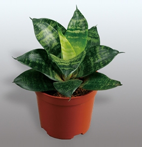 虎尾蘭(Sansevieria)又名虎皮蘭、千歲蘭,為龍舌蘭科多年生常綠植物,原產(chǎn)于非洲及亞洲南部,葉片叢生并直立,肥厚革質(zhì),兩面均有不規(guī)則的暗綠色云層狀橫紋,如虎尾而得名?;⑽蔡m容易栽培,特別耐室內(nèi)擺放,因能吸收有害氣體,清潔室內(nèi)空氣,是健康生活的室內(nèi)植物,視健康似黃金的人們最喜歡栽培。